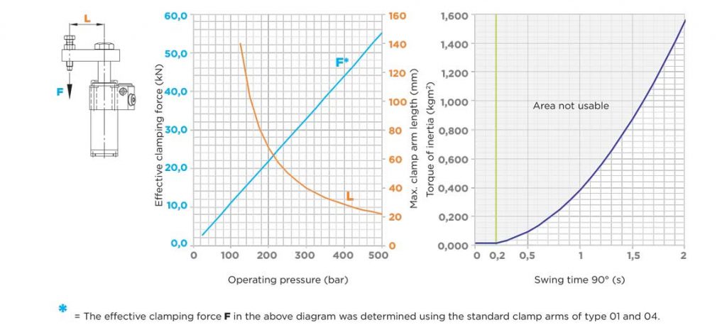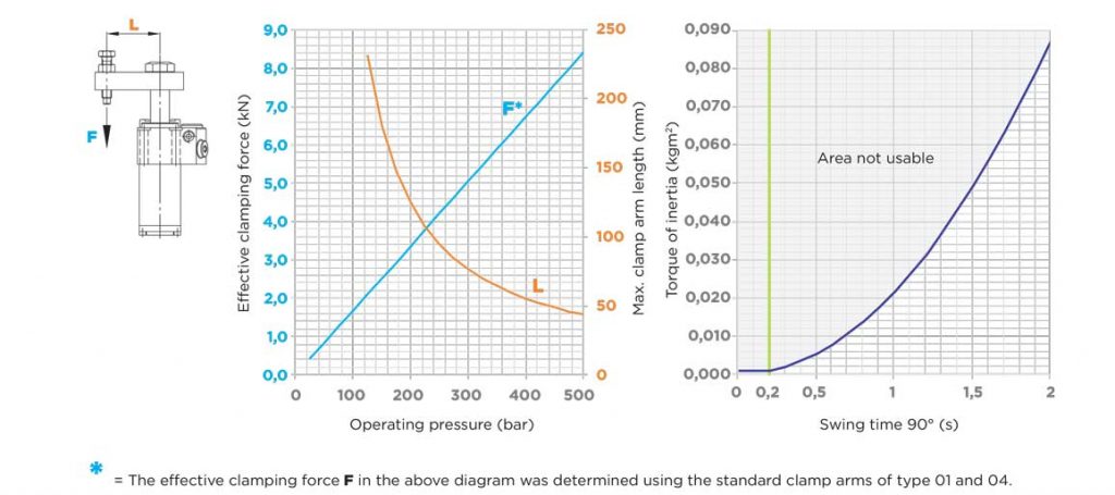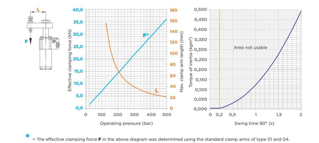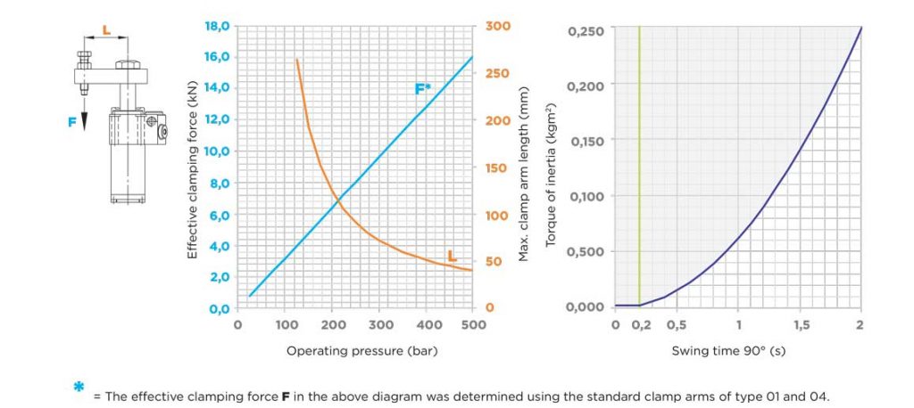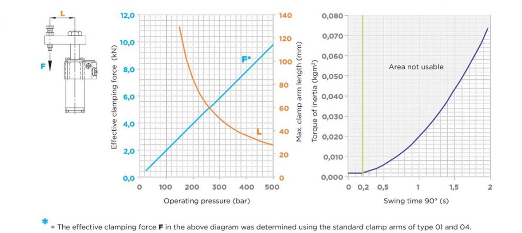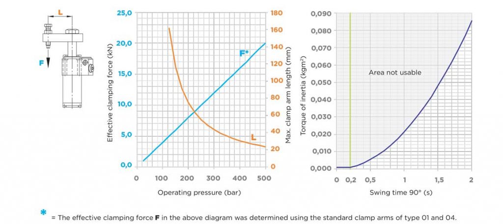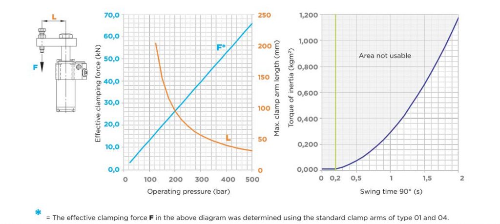 100 bar 时的夹紧力,使用标准“L”型夹紧臂