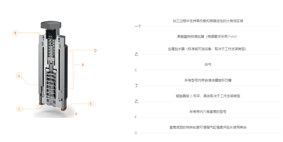 液压工作支架在加工过程中提供有效支撑,并补偿振动和工件偏转以及粗糙表面。